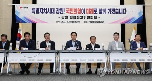 (원주·서울=연합뉴스) 차지연 곽민서 기자 = 국민의힘이 14일 총선을 8개월 앞두고 '보수 텃밭' 강원을 찾아 표심 다지기에 나섰다.