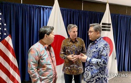 한미일 외교장관은 지난달 인도네시아 자카르타에서 열린 아세안 외교장관회의 참석 계기에 별도로 만나 회담을 진행한 바 있다.