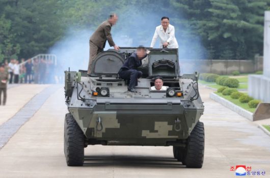특히 김 위원장은 전투장갑차 생산공장에서 새로 개발한 다용도전투장갑차를 직접 몰았고, 방사포탄 생산공장에서 122㎜와 240㎜ 방사포탄의 유도무기화가 “일대 혁명”이라고 강조했다.