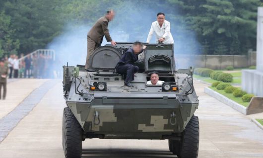 관영 매체들은 김 위원장이 새로 개발된 다용도 전투장갑차에 탄 모습, ‘남조선 괴뢰들을 쓸어버(리자)’라는 대남 적대 선전선동 문구 앞에서 활짝 웃는 사진도 공개했다. 그는 “압도적인 군사력과 확고한 준비태세를 갖춤으로써 적들이 감히 무력을 사용할 엄두를 내지 못하게 만들며 만약 접어든다면(덤벼든다면) 괴멸시켜버려야 한다”고 했다.