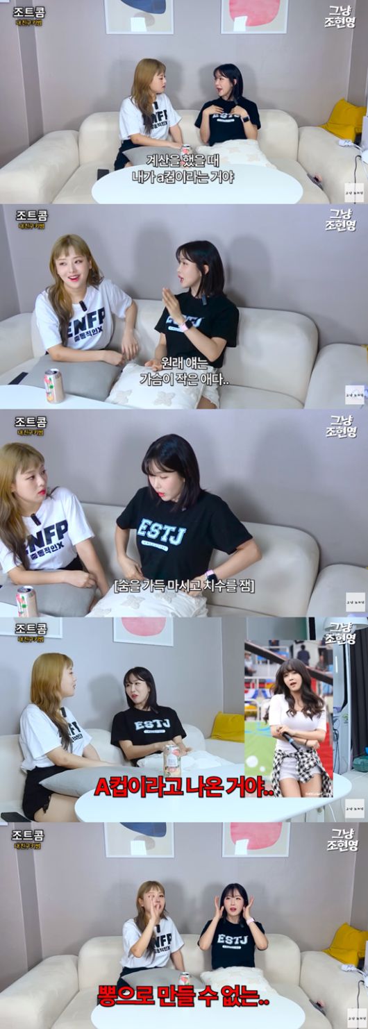 13일 유튜브 채널 그냥 조현영에는 '내가 A컵이라고? ㅋ'이라는 제목의 영상이 게재됐다.