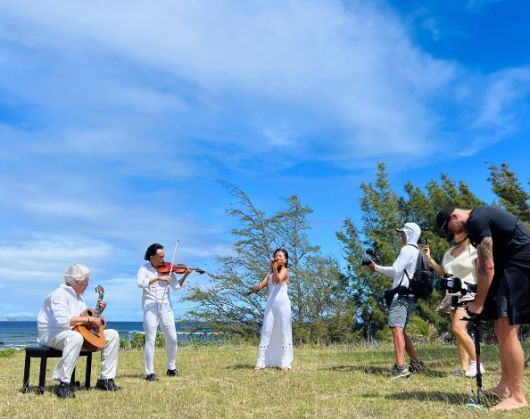 ◆ 이진영> 하와이에서 저희 실제 임옥순 여사가 그 손자인 게리와 자주 갔던 그 공원을 찾아서 그쪽에 거기서 연주를 저희가 촬영을 했죠.