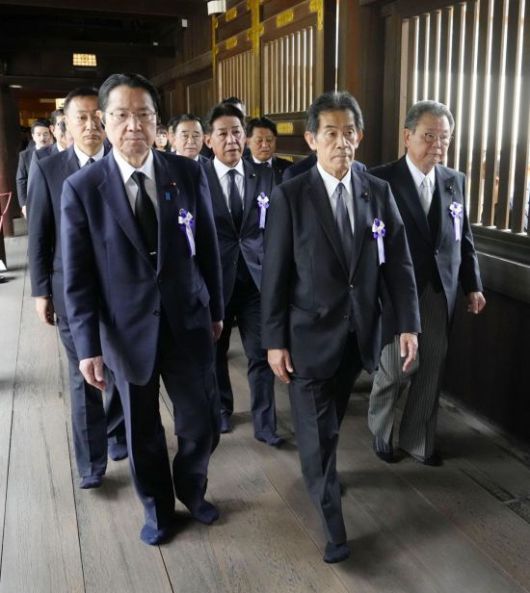야스쿠니신사 집단참배 나선 일본 국회의원 [이미지출처=연합뉴스] |