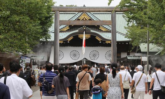 야스쿠니 신사는 극동 국제군사재판에 따라 처형된 도조 히데키(東條英機) 전 총리 등 태평양전쟁 A급 전범 14명이 합사된 곳이다.