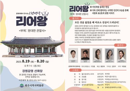 원주시역사박물관은 오는 19∼20일 이틀간 강원감영 선화당에서 '리어왕:원대한 관찰사' 공연을 한다고 16일 밝혔다.
