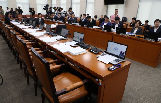 [서울=뉴시스] 이영환 기자 = 16일 오전 서울 여의도 국회에서 열린 전체회의에서 국민의힘 의원석 및 정부 기관장들의 자리가 비어 있다. 이날 회의에 국민의힘은 이만희 간사만 참석 후 의사진행 발언을 마치고 퇴장 했으며 이상민 행정안전부 장관 등 정부 기관장들은 불참했다. 2023.08.16. 20hwan@newsis.com |