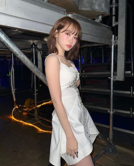 공개된 사진은 무대 의상을 입은 그의 모습. 갈색머리로 변신한 김채원은 아이즈원 활동 시절을 떠올리게 하는 깜찍한 매력을 발산해 시선을 모은다.