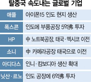 이처럼 미국 내 투자가 크게 늘어난 반면 ‘세계의 공장’으로 불리던 중국에서는 글로벌 기업들이 본격적으로 발을 빼려는 움직임이 감지된다.