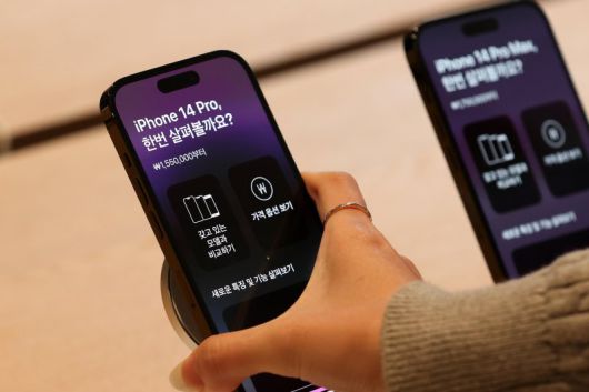 애플의 신작 아이폰14 시리즈 공식 출시일인 지난해 10월 7일 서울 중구 명동 애플스토어에서 고객이 아이폰14 시리즈를 살펴보고 있다./사진=뉴시스 |