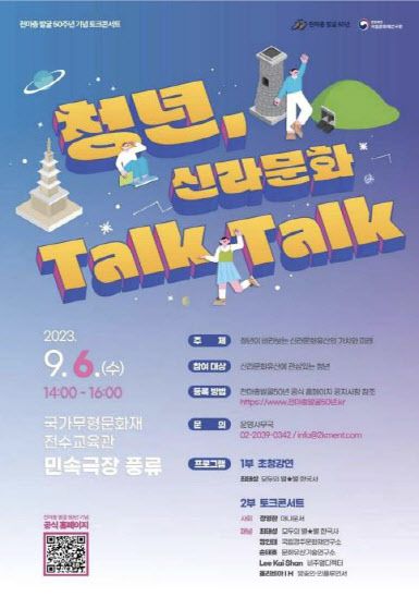 [이데일리 이윤정 기자] 문화재청 국립문화재연구원은 천마총 발굴 50주년을 맞아 9월 6일 서울 강남구 국가무형문화재전수교육관 민속극장풍류에서 이야기공연 ‘청년, 신라문화 톡톡(Talk Talk)’를 개최한다.