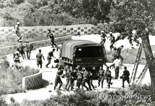 (서울=연합뉴스) 김성진 기자 = 18일은 미루나무 1그루에서 가지 치는 작업으로 인해 한국전쟁 재발 위기를 부른 이른바 '판문점 도끼만행 사건' 47주기다.