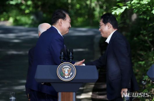 마지막으로 기시다 총리는 한미일 간 협의체를 정비할 것이라면서 "이를 통해서 3국의 연계를 지속적이면서도 안정적으로 강화해가는 토대를 마련할 것"이라고 말했다.