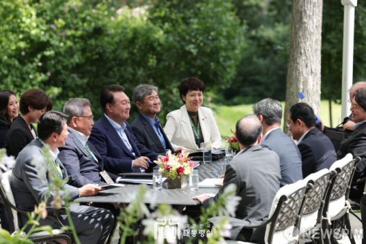 [서울=뉴스핌] 윤석열 대통령이 18일(현지시간) 메릴랜드주에 위치한 미국 대통령 별장 캠프 데이비드에서 기시다 후미오 일본 총리와 한일 정상회담을 하고 있다.[사진=대통령실] 2023.08.19 photo@newspim.com 저작권자(c) 글로벌리더의 지름길 종합뉴스통신사 뉴스핌(Newspim), 무단 전재-재배포 금지