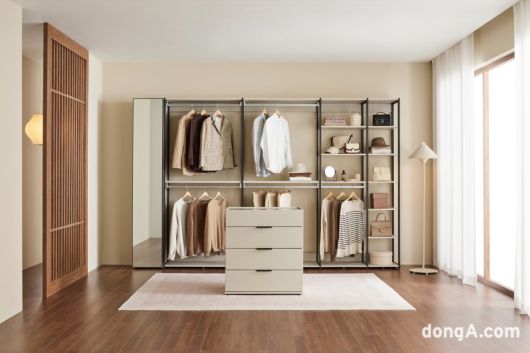 스테이 플러스 드레스룸은 ‘스테이 드레스룸’의 업그레이드 버전이다. 기존 제품보다 높이를 11cm 높이고 콘센트·선반이 기본 설치된 화장대, 거울도어와 함께 꾸밀 수 있는 코너장 등 옵션을 추가했다. 또 100cm 행거형 모듈을 적용해 좁은 공간에 설치하더라도 넓게 활용할 수 있도록 했다. 컬러는 화이트, 베이지 2종으로 구성됐다.