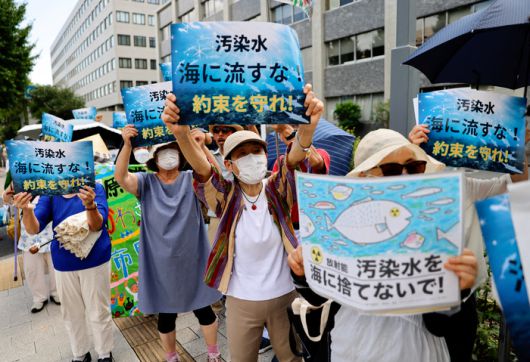 지난 18일 일본 도쿄 총리 관저 앞에서 시민들이 후쿠시마 원전 오염수 방류에 반대하며 시위를 벌이고 있다. | 로이터연합뉴스 |