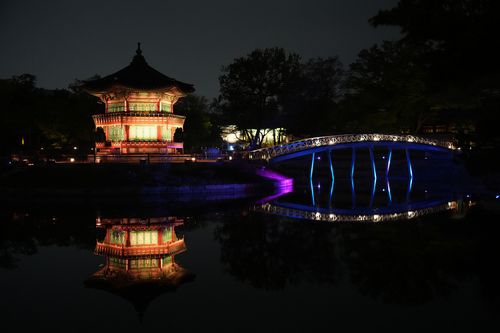 별빛야행 관람객에게만 허락된 취향교를 지나 만나는 향원정의 야경은 프로그램의 백미로 꼽힌다.