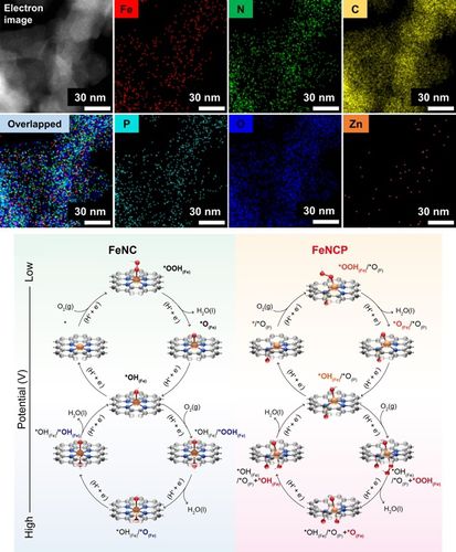 연구팀은 백금을 대체할 수 있는 공기극용 '단일 원자 철·질소·탄소·인 소재'를 개발하고, 활성 메커니즘을 규명했다.