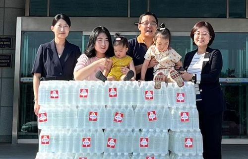 생수 1천병 기탁한 배규민 씨 부부와 두 딸 |