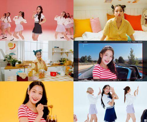 김소연은 '톡톡' 뮤직비디오에서 노란색 파자마와 교복 등을 입고 풋풋한 매력을 선보였다.