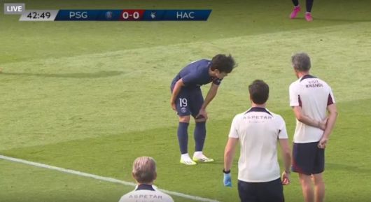하지만 전반 막판에 햄스트링 통증을 호소했다. 이강인은 전반 43분 갑자기 허벅지 부여잡았다. 파리 생제르맹 역습 과정에서 전력질주를 하다가 과부하가 걸렸는지 불편한 모습이었고, 벤치로 들어갔다.