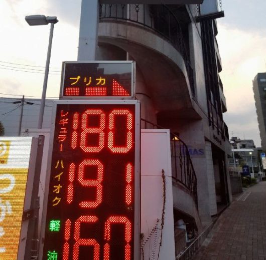 23일 일본 신주쿠의 한 주유소에서 일반 휘발유 가격이 180엔으로 표시돼 있다. 이는 2008년 이후 15년 만에 최고 수준이다. 사진=김경민 특파원 |