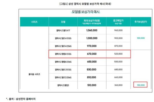 삼성은 국내 소비자를 위해 중고폰 보상 프로그램의 보상 폭을 확대, 256GB의 경우 현재보다 40% 정도 혜택 폭을 늘려(사전 예약시 – 100만원 혜택 제공) 140만의 폰(부가세포함)을 40만원에 구매할 수 있도록 해야 한다. 나아가 미국처럼 용량 구분 없이 혜택 폭을 동일하게 제공해야 한다.