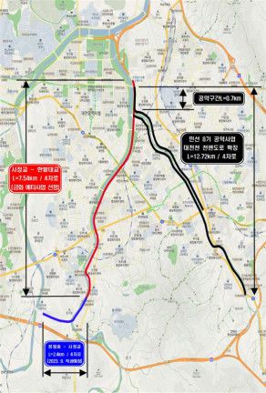 시는 '유등천 합류점∼한밭대교' 0.7㎞ 구간도 포함돼 대전천 천변 도로 확장사업이 탄력을 받을 수 있을 것으로 기대한다.