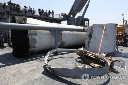 북한이 올해 5월에 발사한 우주발사체 잔해 |