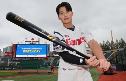 롯데 안방 부산 사직구장에선 윤동희의 유니폼을 손쉽게 볼 수 있다. 프로 2년차, 1군 데뷔 4개월 밖에 안 됐는데 유니폼 판매량 팀내 8위다. 윤동희는 "눈에 유니폼이 많이 보인다. 응원받는 느낌이라 더 집중하고, 열심히 해야겠다는 생각도 든다"고 웃었다.