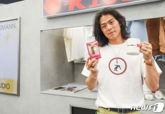 (서울=뉴스1) = 래퍼 빈지노가 24일 오전 서울 영등포구 더현대 서울에 위치한 새 앨범 발매 기념 팝업스토어 '디 반 비비(Die Bahn BB)'에서 제품을 소개하고 있다. 이번 팝업스토어에서는 모자·티셔츠·가방·폰케이스·키링 등 한정판 굿즈와 판매가 종료된 한정판 앨범 등을 판매한다. (현대백화점 제공) 2023.8.24/뉴스1