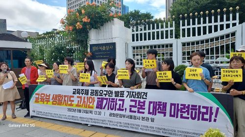 또 ▲ 차별 교육 중단 ▲ 교원의 노동·정치 기본권과 교육과정 편성·운영권 보장 ▲ 생활지도 고시안 폐기 ▲ 학급 당 학생 수 감축 ▲ 교육노동자 정원 확대 등도 요구했다.