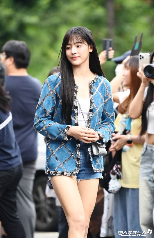 (엑스포츠뉴스 박지영 기자) 25일 오전 서울 여의도 KBS 신관에서 KBS 2TV '뮤직뱅크' 리허설이 진행됐다. 이날 사전녹화에 참석한 뉴진스 민지가 출근길에 포즈를 취하고 있다.박지영 기자 jypark@xportsnews.com