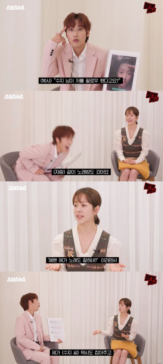이날 재재는 한지민의 MBTI(성격유형검사) INFP의 특징으로 "사람은 좋아한다"고 소개했다. 한지민의 인맥이 언급되자, 재재는 앞서 한지민이 SNS 라이브를 통해 "수지 님이 저를 팔로우했다고요?"라며 깜짝 놀라던 모습을 재연했다.