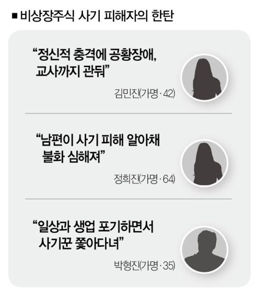 정희진씨, 김민진씨, 박형진씨. 이들 세 사람은 최근 기승을 부리는 비상장주식 사기의 피해자다. 정씨는 높은 수익률에, 김씨는 언론사의 광고성 기사에, 박씨는 상장에 실패하면 투자금을 돌려준다는 유혹에 넘어가 피땀 흘려 벌어들인 돈을 비상장주식 사기꾼들에게 보냈다.