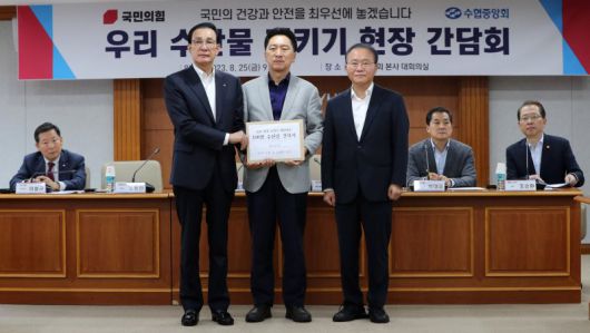 김기현 대표를 비롯한 국민의힘 지도부는 25일 서울 송파에 위치한 수협중앙회에 방문해 '우리 수산물 지키기 현장 간담회'를 실시했다.