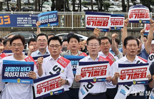이들은 기자회견 후 “윤석열을 탄핵하라” “해양투기 중단하라” 등의 구호를 외치며 두 시간여에 걸쳐 용산 대통령실까지 도보로 행진했다. 용산 대통령실 근처에서 경찰에 가로막힌 이들은 서울전쟁기념관 주변을 한 바퀴 돌고 해산했다. 민주당은 토요일인 26일엔 서울 중구 한국프레스센터 앞에서 시민단체와 함께 ‘후쿠시마 원전 오염수 투기 중단 범국민대회’를 여는 등 장외투쟁을 이어갈 예정이다.