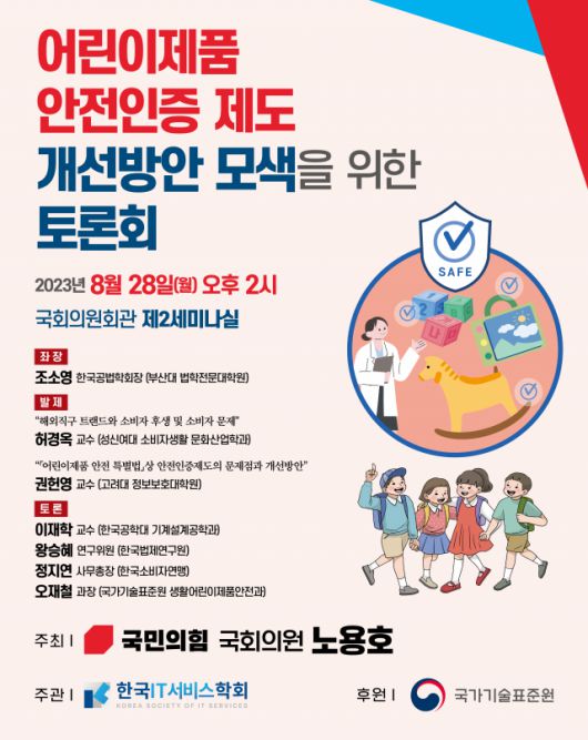 노용호 의원(국민의힘)이 주최하고, 한국IT서비스학회가 주관, 국가기술표준원이 후원하는 ‘어린이제품 안전인증 제도 개선방안 모색’을 위한 토론회가 오는 28일 오후2시 국회의원회관 제2세미나실에서 개최된다.