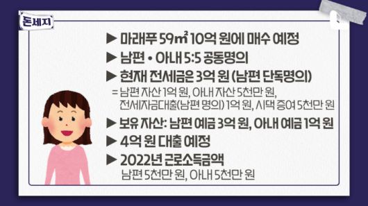 ◆ 엄해림> 문제는 이제 아내분이신데요 아내분은 현재 예금이 이제 1억 원이죠. 그러면 '(나머지) 4억 원을 도대체 어떻게 소명하란 말이냐'라는 부분에서 고민이 많이 되실 거예요.