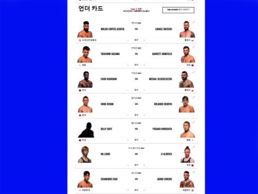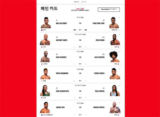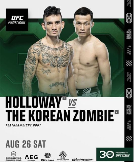 UFC 파이트 나이트: 할로웨이 vs 코리안 좀비 메인카드는 이날 오후 9시부터 시작될 것으로 보인다.