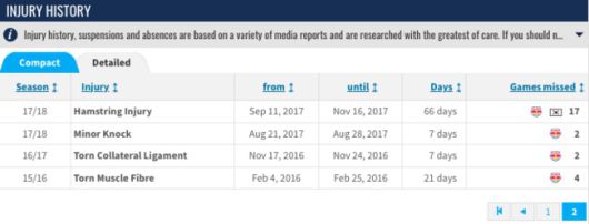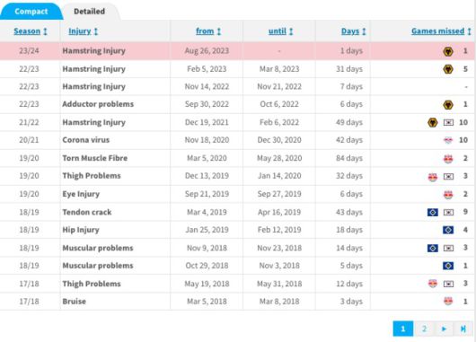 라이프치히 시절에도 장기 부상을 입은 바 있다. 황희찬은 2020-21시즌 코로나 바이러스로 인해 약 42일을 경기에 나서지 못했다. 당시 10경기를 결장했다. 울버햄튼 이적 이후에는 6번째 부상이다. 황희찬은 2021-22시즌에도 햄스트링 부상으로 49일(6경기 결장)을 전력에서 이탈한 바 있다.