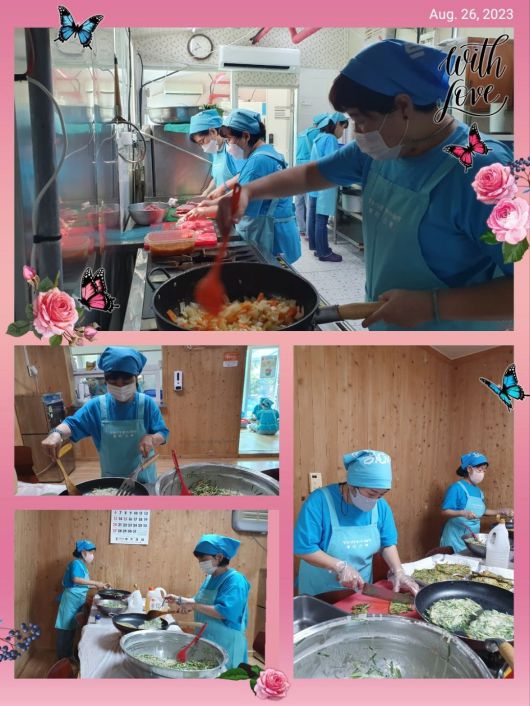 '라온' 회원들은 아직 무더위가 가시지 않은 날씨에 100인분의 식사를 장만하기 위해 불앞에서 구슬땀을 흘렸지만 로뎀의집 원생들이 좋아하는 음식을 만든다는 마음에 기쁘게 정성을 다해 조리했다고 한다.