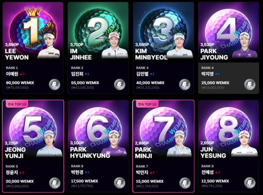 * 랭킹출처 : https://wemix.golf.sbs.co.kr/ |