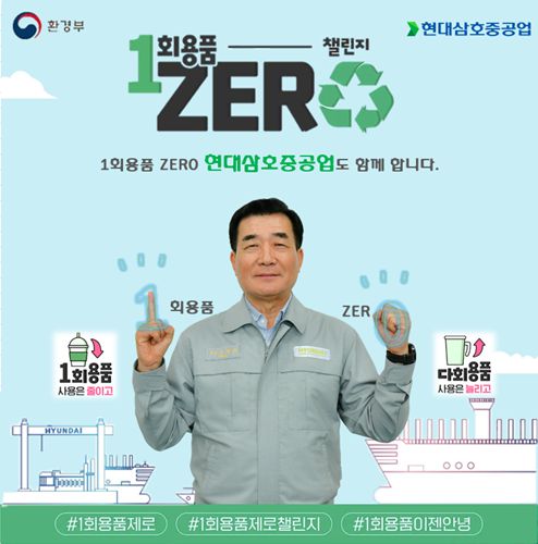 현대삼호중공업 신현대 사장이 환경부 주관 ‘1회용품 ZERO 챌린지’에 참여했다. [사진제공=현대삼호중공업] |