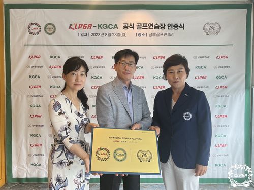 (서울=연합뉴스) 권훈 기자 = 한국여자프로골프협회(KLPGA)는 28일 경기도 용인시 기흥구 남부골프연습장을 제10호 공식 인증 골프 연습장으로 지정했다.