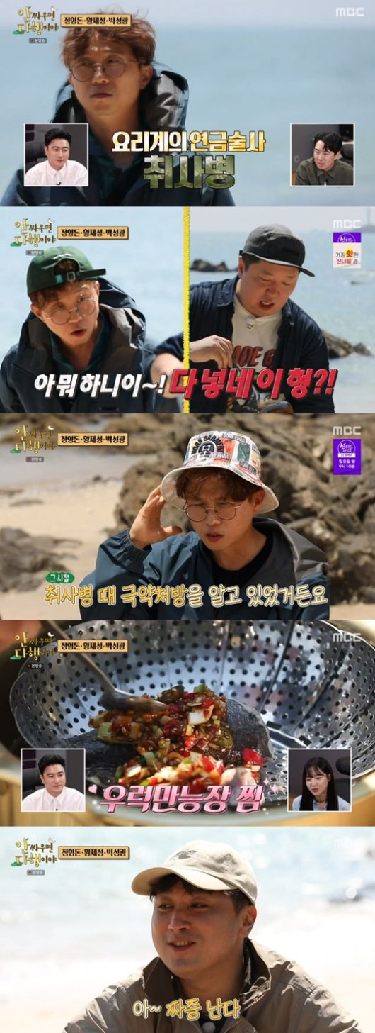 28일 오후 9시 방송된 MBC TV '안싸우면 다행이야'(이하 '안다행') 138회에서는 개그계 동료인 정형돈과 박성광, 황제성이 무인도로 떠나는 모습이 그려졌다. 세 사람 중 유일한 '안다행' 섬 체험 경험자인 정형돈은 "실내에서 꿀 빨던 애들" 이라고 으스대며 리더로 나섰다.