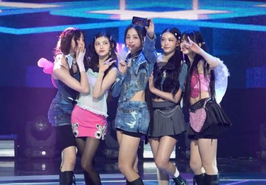 걸그룹 뉴진스가 지난달 30일 SBS ‘인기가요’에 출연해 아이폰14 프로를 활용한 신곡 ‘ETA’ 무대를 선보였다. SBS 인기가요 캡처 |