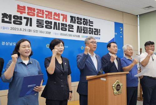 또 "천 시장은 통영 시민과 지역 발전을 위한 행정보다 정부 여당 눈치 보기에 급급했다"며 "이번 사건을 통해 오직 자기 영달만을 위해 줄서기 하는 천 시장의 민낯이 드러났다. 천 시장의 자진 사퇴와 선관위의 조속한 수사를 촉구한다"고 말했다.