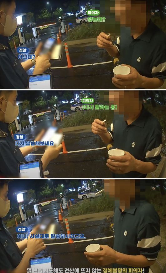경찰은 A씨에게 인적 사항을 물었지만 그가 밝힌 이름과 주민등록번호는 조회가 되지 않았다. A씨는 경찰에 신분증이 차에 있다고 말해 차 안을 확인해 봤지만 신분증은 발견되지 않았으며 차 명의도 다른 사람의 것이었다. 경찰은 A씨 휴대전화에 등록된 프로필 정보로도 조회해 봤지만 역시 다른 사람이었고, A씨가 갖고 있는 집 열쇠로 주소를 확인하려 했으나 실패했다.
