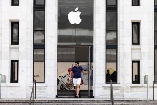 애플이 다음달 12일(현지시간) 아이폰15 출시행사를 열 전망이다. 21일 미국 워싱턴DC 애플 매장에서 한 고객이 문을 나서고 있다. EPA연합 |