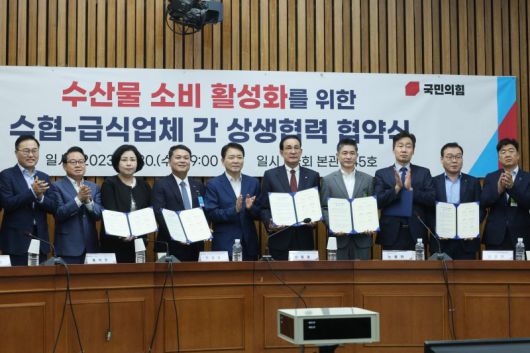 국민의힘 우리바다지키기검증 TF는 이날 국회에서 '국민의힘 수산물 소비 활성화를 위한 수협-급식업체 간 상생협력 협약식'을 가졌다.